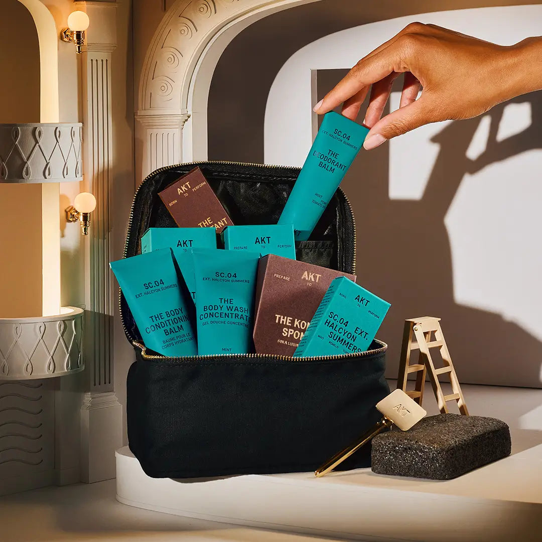 Featuring The Body Wash Concentrate, The Body Conditioning Balm and The Deodorant Balm, supported by The Konjac Sponge and The Assistant, and presented in a luxury travel wash bag — this scene-stealing body care routine is guaranteed to bring the house down!